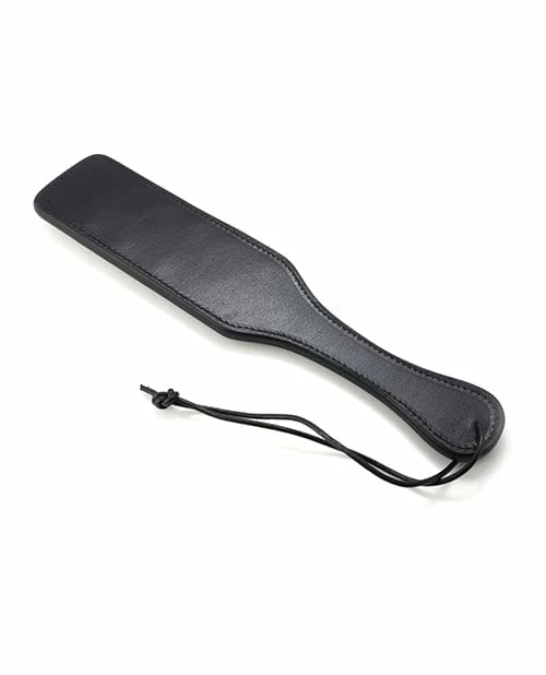 This 14″ long, 1½” wide double sided leather paddle is a versatile tool in your capable hand. Use the smooth side and you can deliver a sting… or flip it over and expose the dull spike nubs ready to put a little more teeth in your swing. The handle contains a D-ring for easy placement on your dungeon wall pegboard or on a belt loop at your side.