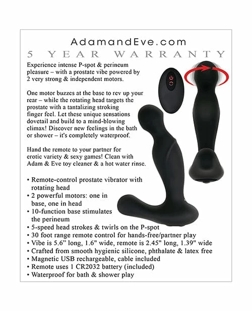 Adam & Eve Adam’s Rotating P Spot Massager – Black