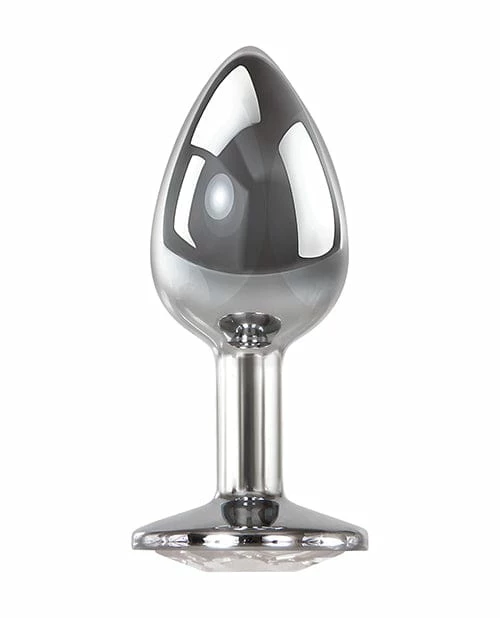 Experience the intense, targeted stimulation that you can only get with the weight and feel of polished aluminum. This medium-sized plug is perfect for beginners who crave a body-safe toy that can also be warmed or chilled for exhilarating temperature play. The flared safety base provides effortless navigation. A sparkling clear jewel sets a playful mood! Its nonporous surface sanitizes to perfection with Adam and Eve toy cleaner and a warm water rinse. A black velvet drawstring bag is included for discreet travel or storage. Medium-sized metal plug for anal play. Perfect for intense targeted stimulation. Use as is, or warm or chill for temperature play. Smooth polished aluminum takes any lube. Stylish jewel at base made from durable ABS plastic .Discreet velvet bag included. Material : Aluminum. ABS. Dimensions: Overall Length – 3.25 inches Width – 1.35 inches. Five Year Warranty.