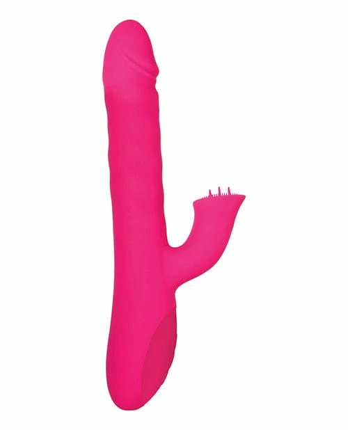 Feel the rush as the 10 function vibrating clitoral stimulator’s 200 tiny nubs and 3 tongue-like ticklers flicker against your hot button.