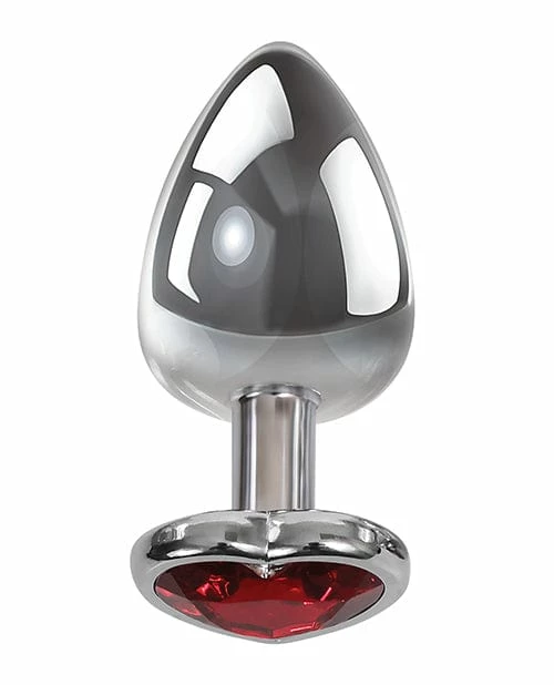 Fall in love with anal play! This gleaming metal anal plug is sized for sweet pleasure that even beginners will love. Add lube and enjoy the easy glide in and stimulating feel. The red heart jeweled base makes insertion easy, keeps the plug in place, and lets you show off your cheeky side. The metal even holds temperature for thrilling warm or cold play. Includes a velvet bag for easy storage. 2.81 inches long, 1.08 inches wide,