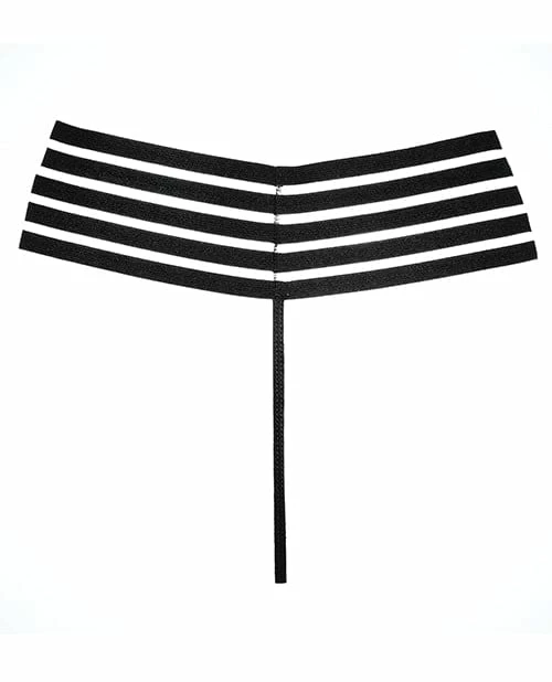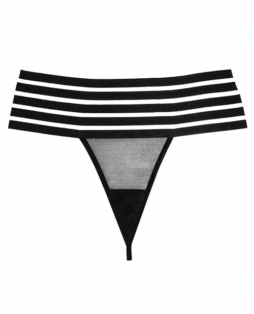 A high waist edgy inspired G-string features elastic waist and sheer black mesh front panel giving a little edge to a classic piece. Color: Black One Size. Bust: 34in.-38in. Waist: 26in.-30in. Low Waist: 28.5in.-32.5in. Hip: 36in.-40in.
