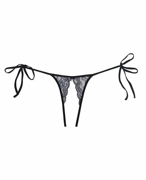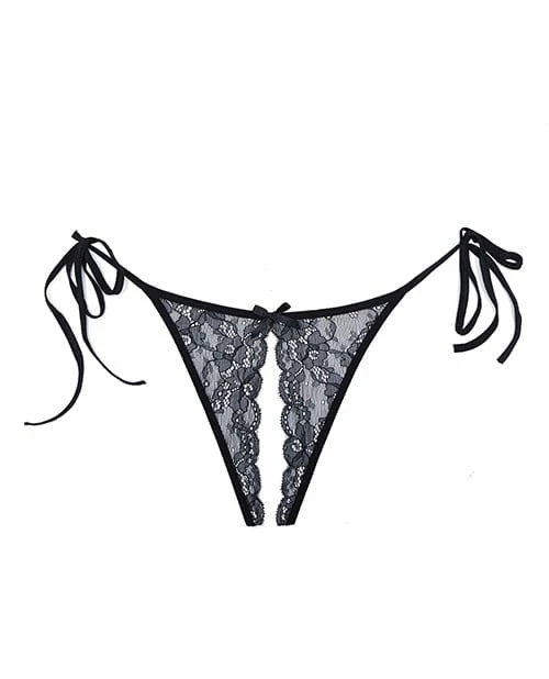Allure Lingerie Adore Sugar Tie Side Open Lace Panty Black One Size Fits Most