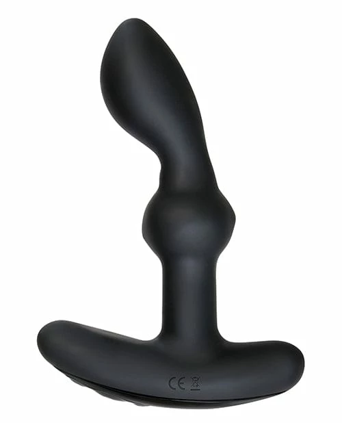 Vibrating prostate massager with up and down beads at base Center ball has beads that move up and down like a teeter totter Gently curves shaft and bulbous tip for P-spot stimulation 3 teeter totter speeds 5 vibrating functions and speeds in shaft. Buttons illuminated with red LED lights.