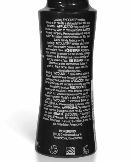 Encounter’s Female Silicone Lubricant Lasting is 100% vegan, and specially formulated thick and slick for anal pleasure. Infused with mint extract to relax the sphincter and gentle on the skin. Preservative free formula; pure Silicone; stays slick in water; vegan certified.