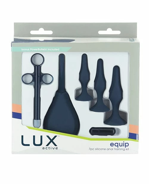 LUX Active’s Equip is luxury set ready for all of your anal endeavors, especially if you’re a beginner! What’s exactly inside this incredible kit? Let’s start with the 3 silky smooth, multi-sized silicone anal plugs, which allows the user to gently and gradually increase in size. The plugs are tapered in shape for added stimulation and are sized for easy insertion. Next, we have the anal douche that is made from 100% silicone material. What’s unique about this douche is its backflow prevention feature, which allows the user to complete their regimen in an efficient and hygienic way. The kit is not complete without a syringe designed for lubricant application. Now you can administer your lube exactly where you want it to go without making a mess. And as an added value, The Equip kit includes a vibrant blue athletic tote for convenient travel and discreet storage. And last but certainly not least, take pleasure to the next level with the included bonus PowerBullet that adds deep and rumbly PowerBullet ® vibrations to the mix for external use. Equip can introduce you to anal pleasure all from 1 box. What are you waiting for?