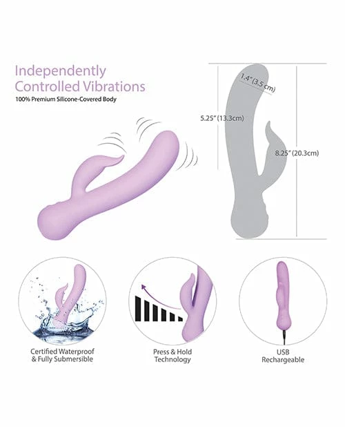 Choose between the two independently controlled motors for either clitoral and/or G-spot stimulation. The external stimulator features a curvy hood that gently encloses on the clitoris for unparalleled targeted pleasure. While the external motor works its magic, the internal G-Spot massager is slightly curved for optimal stimulation.