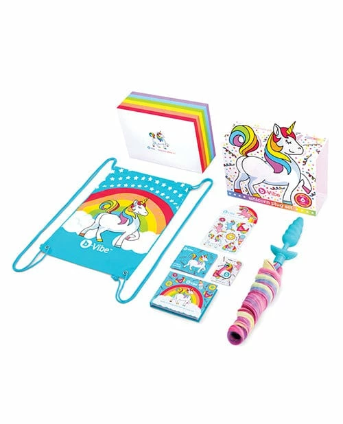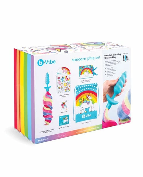 The b-Vibe Unicorn Plug Limited Edition Set features the ultimate fun accessories to show off your pride: