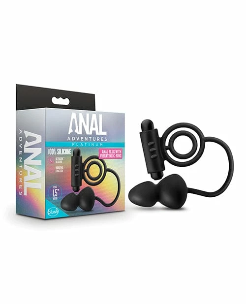 Blush Novelties Anal Toys Blush Anal Adventures Platinum Silicone Anal Plug With Vibrating Cock Ring – Black