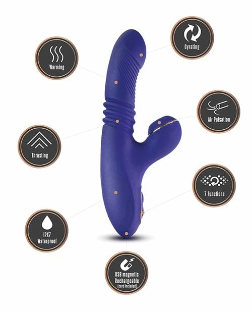 The Lush Iris features endless combinations of delicious sensations! The external arm envelops the clitoris and provides intense waves of air pulsation. The self-warming, insertable shaft heats up for an indulgent experience, while the gentle ridges enhance G spot connectivity. Add a gyrating and thrusting motion and you have overwhelming, orgasmic possibilities. This unique dual stimulator is submersible and waterproof, easy to clean and fun in the bath or shower. Made of Puria Platinum-Cured Silicone, the Lush Iris is 100% body safe and rechargeable.