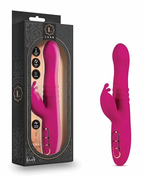 Ready for boundless pleasure possibilities? The Lush Kira rabbit vibe features two points of vibration and a thrusting, gyrating, warming shaft. The rabbit ears offer surround-sound style clitoral stimulation. Kira delivers 7 vibration functions, offering many options to choose from! The UltraSilk silicone feels luscious against your body. USB magnetic rechargeable and it’s splashproof for easy cleaning. ¥SIZE – 9.5 Inch Length (5 Inch Insertable) x 1.25 Inch Width.