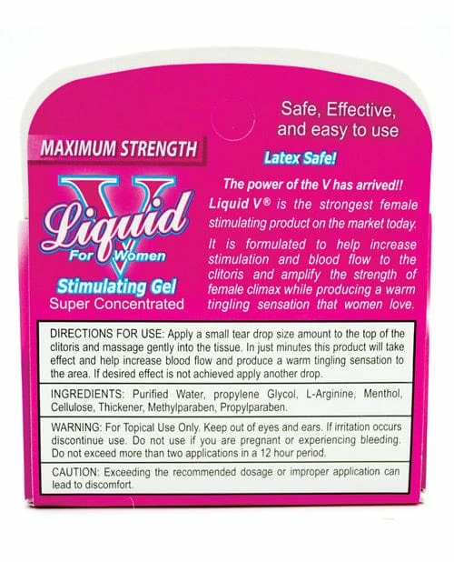 Discover the power of Liquid V! Liquid V is a maximum strength topical gel that amplifies pleasure for women immediately on contact. It is formulated to help women who want to enhance their personal experiences. Achieve the ultimate pleasure! Produces a tingling sensation Helps increase pleasure Perfect for women of all ages! Maximum Strength Over 40 applications