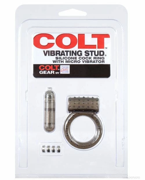 Add another stud to your bedroom routine! The Colt Vibrating Stud is made of Silicone and includes a micro vibrator. The enhancer ring is stretchy and will fit most sizes. The bullet sleeve and face of the cock ring are nubbed with feelers to tickle and bring added sensations. The removable 1.75″ x .625″ micro-bullet has an on/off button for easy activation. The micro-bullet requires 2 cell size batteries (4 included) to provide powerful vibrations. Get enhanced lovemaking… all night long!