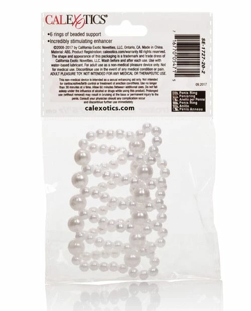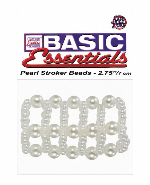 Take it with you! The Basic Essentials Pearl Stroker Beads are made of six rings of small and large beads for enhancement and stimulation of your next stroking experience. Small, soft, and stretchy, these stroker beads are discreet enough to put in your pocket and take anywhere.