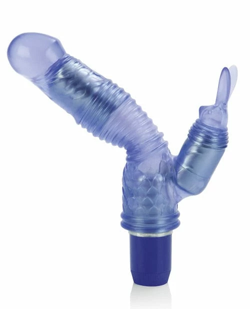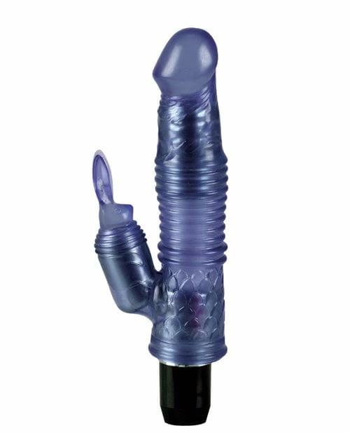 This is a dual motor vibrating AquaGel™ probe that flexes and bends for multi-directional positioning. It is totally waterproof for fun in and out of the water! It features a sensuously pronounced soft jelly head, a veined and ribbed shaft, and a power-packed flickering clit-tickling bunny. Overall toy length is 8.75″ with a 5.25″ x 1.5″ useable shaft. Three AAA batteries, not included, provide the robust multi-speed dual motor vibrations. Get busy with the world’s most flexible bunny!