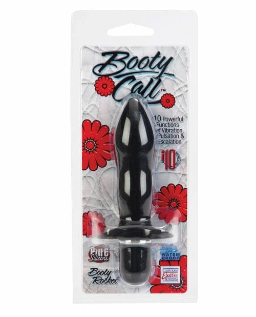 From Cal Exotic comes the Booty Call Booty Rocket. The soft and pliable vibrating silicone probe is tapered for personalized pleasure. The Rocket features 10 powerful functions of vibration, pulsation, and escalation. The push button control has an LED light. Silicone (probe) ABS with PU Cote (cap) ABS with Silver Plating (decor ring). Requires 1 AA battery. 4.75″ x 1.25″.
