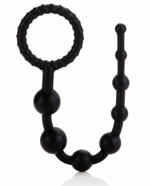 The Booty Call X-10 Beads, from CalExotics, are graduated, durable, firm and flexible silicone pleasure beads. Has a sturdy retrieval ring. Made of silicone. 8″ x 0.75″/20.25 cm x 2 cm.