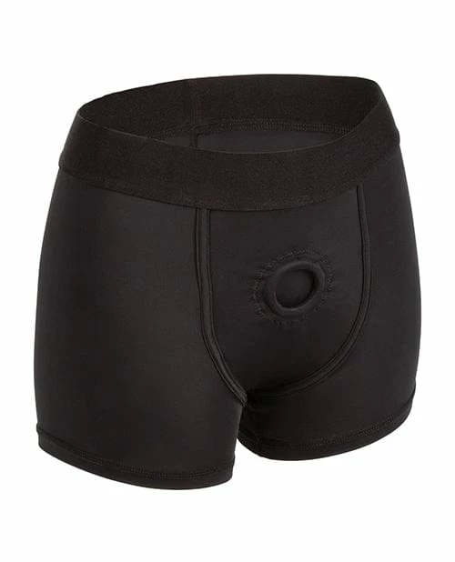 The Boundless Boxer Brief Harness is an ultra-comfortable, easy wear harness designed with powerful performance and comfort in mind. This classic harness has a supportive extra-wide waistband, soft stretchy material and internal probe straps for the ultimate support. Enjoy easy access to your favorite probe with the accommodating double panel interior design. The durable, reinforced O-ring stretches to accommodate your favorite packer, vibrator or dildo.