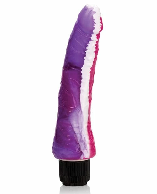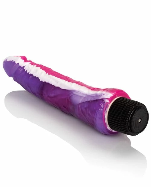 This 7 1/2″ long tapered vibrator is soft, sensual, and is made of pliable multi-colored jelly. The diameters vary from 1 1/4″ to 1 3/4″. The powerful, multi-speed vibrations are provided by two AA batteries, not included. Go back in time with this tie-dye favorite!