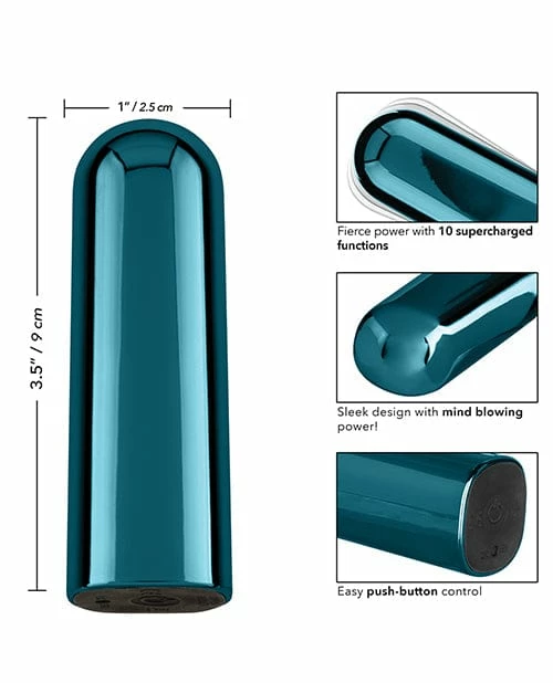 Supercharged bullet with mind-blowing power. 10 intense functions of rumbling vibration, pulsation and escalation. Whisper-quiet motor. Easy push-button control with security travel lock feature