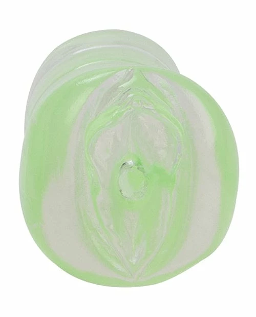 Your new nightlight! The Glow Stroker Sweet Pussy is a super-soft, stretchy masturbator with a unique glow-in-the-dark channel that can create a pretty unique lightshow in an otherwise dark room. Glow as you grow!