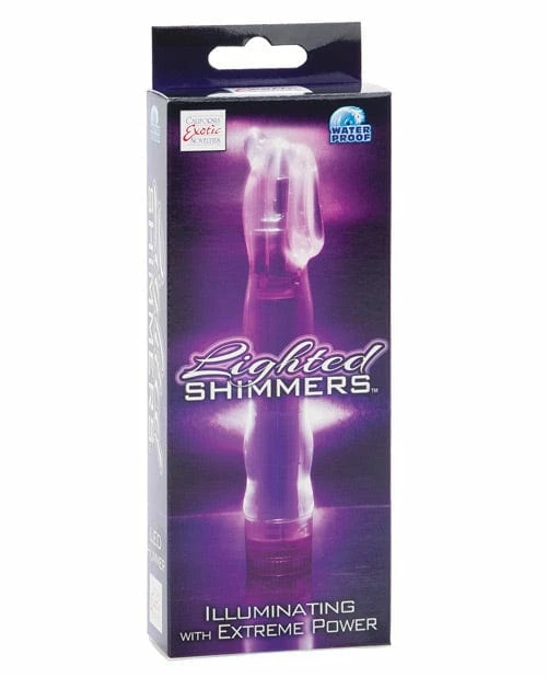 From CalExotics comes the Lighted Shimmers LED Hummer. The Lighted Shimmers set the mood…turn off the lights, turn on the vibrations, and enjoy the light show! It’s illuminating with extreme multi-speed power! Elegant, smooth and sleek high speed vibrator lights up with a brilliant LED. The uniquely contoured design allows for optimum stimulation. Requires 2 AA batteries.