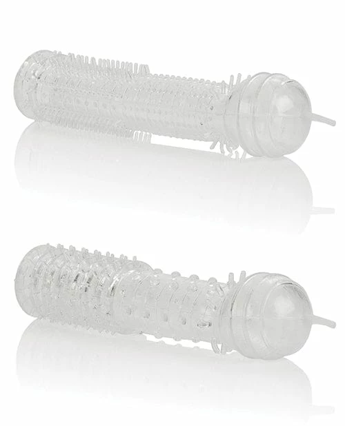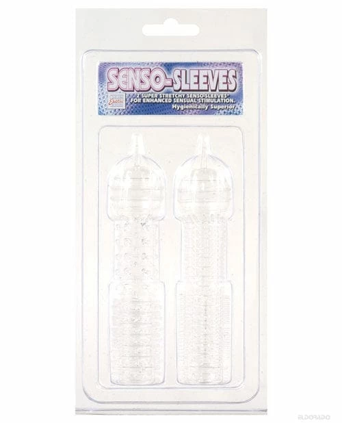 Here’s a fun way to provide enhanced stimulation during sexual intercourse or masturbation. Just slip one of the stretchy silicone sleeves over your favorite adult toy – or your favorite adult – and feel the sensation provided by the texture as it slides in and out. Each sleeve has a different design for two pleasurable sensations.