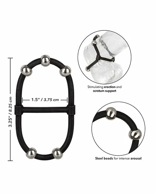 Made to enhance, escalate and intensify ecstasy every time you slip on the Steel Beaded Dual Silicone Maximizer. The sturdy, yet stretchy silicone dual enhancer ring supports while the moveable steel pleasure beads thrill you and your lover.