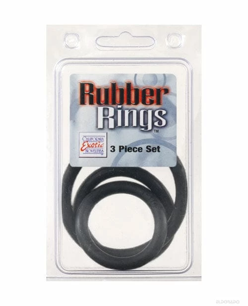 You never know when you might find yourself in need of a selection of cock rings. These black rubber Os are the perfect penis enhancement tool. Simply select one or more of the rings in this 3-piece set and arrange them on your cock for superior support. Use one alone or experiment with all three at once to provide extra enhancement for you and three times the sensation for your partner.