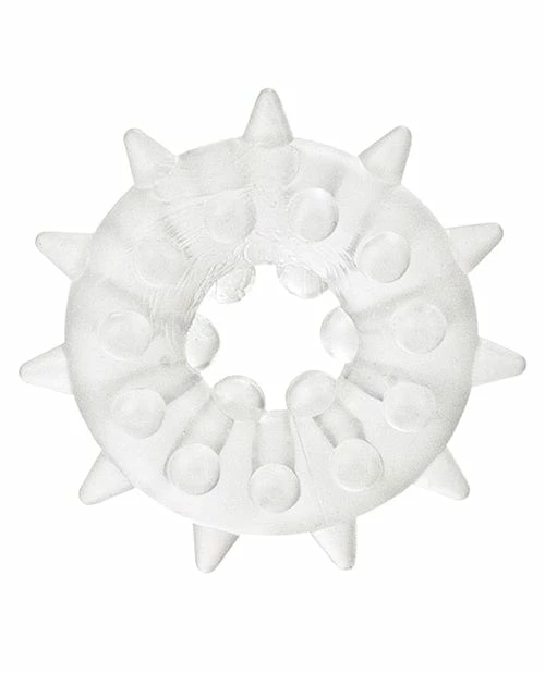 Tighten up your sex routine! The Sexagon Enhancer 2 is made from high grade Silicone. It is super stretchy and the inside of the ring is lined with raised nodules which supply added pleasure for him. Both faces of the ring are lined in titillating raised bumps while there is a ridge of ticklers that circle the outside which are sure to satisfy. Use this cock ring to enhance penis girth as well as extend performance time. One size fits most. Stretch out your love-making experience!