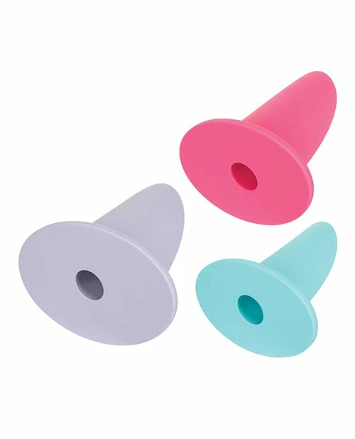 Revitalize and strengthen vaginal muscles with the contoured She-ology Advanced 3-Piece Wearable Vaginal Dilator Set. The uniquely designed 3-piece dilator kit is ergonomically curved and gradually sized to allow for gentle dilation. The advanced size silicone probes have a curved base for gentle insertion and stimulation, pair with a mini bullet for intensified sensation!