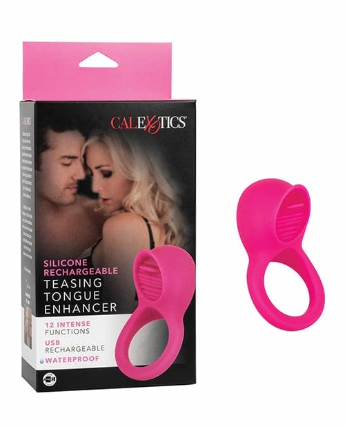 The Silicone Rechargeable Teasing Tongue Enhancer uses the perfect mix of 12 functions of vibration with a flickering teaser ring to deliver double the knee-shaking pleasure. The stretchy stimulator ring is made to intensify pleasure for both beginners and erotic experts alike.