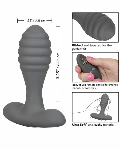 Whether you want to get down and dirty with a partner or indulge in sensual solo time, this thrilling Silicone Remote Adventure Set is versatile pleasure experience. The wickedly naughty set includes an Ultra-Soft Probe with wristband remote control and ribbed enhancement ring with discreet handheld remote. Made to flex and move with the body, the Ultra-Soft probe features a flexible neck, contoured base and supple silicone surface. Whether you take pleasure into your own hands or hand control over to a partner, the probe’s wristband remote control effortlessly flickers through 12 functions of powerful vibration at the touch of a button. The enhancer cock ring features a sensually contoured body, stretchy ring and remote control to flicker through 12 powerful functions of vibration. For versatile play and to keep things vibing just right, each remote controlled toy is on a different remote frequency. The powerful probe runs for 50 minutes on high speed and 1.5 hours on low speed. The enhancer cock ring runs for 50 minutes on high speed and 1.5 hours on low speed. Both completely recharge in only 1 hour. From blushing beginners to erotic experts, this sensually contoured vibe adds versatile vibrations to any toy box.