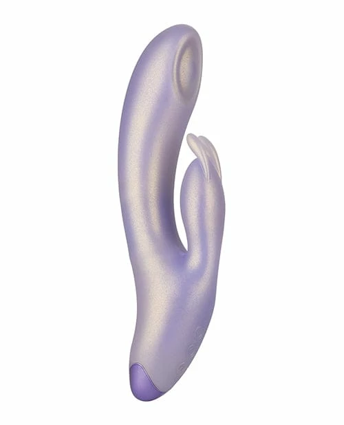 The gorgeous G-Love G-Bunny is a dual stimulating massager with vibrating shaft and thumping pulsation stimulator. Love yourself just right with the flexible G shaft, 7 independent functions of thumping action and 12 independent functions of vibrations. The sensually curved thumping shaft and flickering rabbit stimulator are perfect for teasing internal and external sweet spots. For an ultra smooth surface and flexible body, the flickering stimulator and massager are covered in a shimmering Silicone.