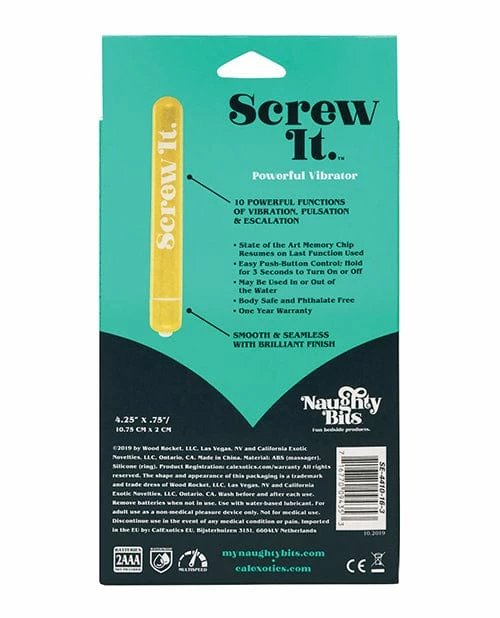 CalExotics Vibrators Naughty Bits Screw It. Powerful Vibrator – Gold