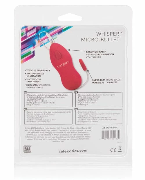 Purple passion! Experience the passion with this silky smooth, incredibly powerful, whisper-quiet, self-heating, soft Rubber-Cote finished micro-bullet. The bullet is only an inch long and a quarter of an inch wide so it’s perfect anytime you need a good thing in a small package. Plugs into battery-operated remote-control. Takes two AA batteries, not included.