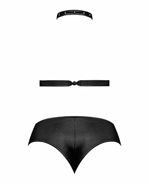 Comme Ci Comme Ca Lingerie Lust Juno Top With Velcro Choker Neck & Mini Short Black