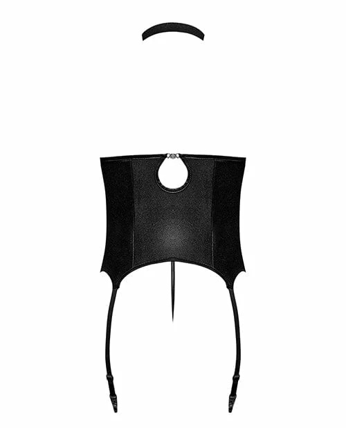 Comme Ci Comme Ca Lingerie Lust Mistress Cupless Corset With Velcro Choker Collar, Metal Garters & G-string Black