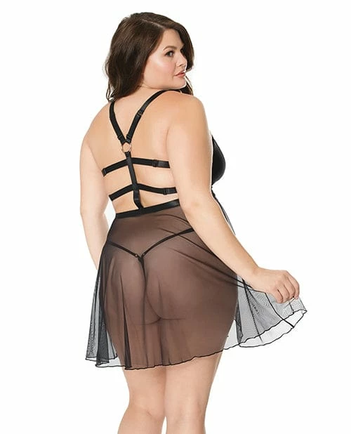 Coquette International Double Slit Sheer Babydoll With Cage Detail Back & G-string Black Os-Xl Lingerie