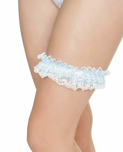 Coquette International Lingerie Gathered Lace Garter W-satin Bow Detail White-blue O-s