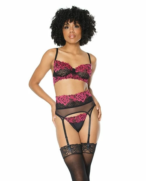 Coquette International Lingerie Scallop Stretch Lace & Sheer Nylon Bra, Garter Belt & G-string