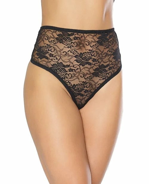 Coquette International Lingerie Stretch Lace High Waist Thong Black O-s