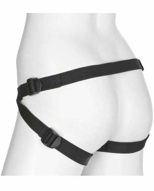 The Doc Johnson Luxe Harness is sleek in design, with simple lines and a comfortable construction. Easily adjustable up to 69″, with pull-to-tighten straps, open crotch and rear, and a snap front for swapping out attachments. Made of smooth black neoprene, the Luxe works with all Vac-U-Lock attachments as well as strap-on compatible toys. Includes two O-rings. Designed for use by women and men. Washable. Made of neoprene.
