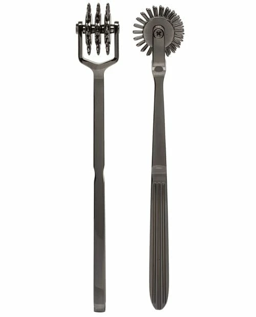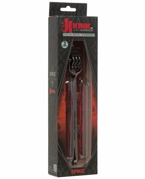 Kink 3 Wheel Pinwheel. Stimulating Pinwheel with three rollers. perfect for medical fetish or general sensation play. User controls pressure and effects. Black chrome-finish metal. Individual wheel tracks prevent pinching. Extra long handle suits every user. Width: 1″. Length: 7″.