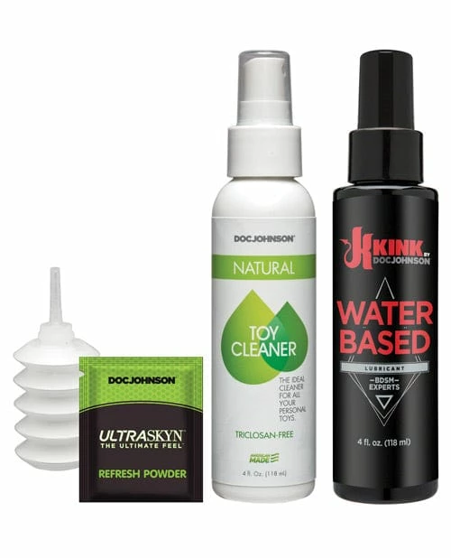 Turn your Power Banger Fucking Machine setup into an all-out orgy. This deluxe accessory pack holds everything you need to satisfy every hole, including Vac-U-Lock™ compatible ULTRASKYN™ cocks in three distinct shapes and sizes. 10 piece kit includes 3 Vac-U-Lock™ Compatible Cock Attachments * ULTRASKYN™ 6″ Spiral Dong * ULTRASKYN™ 7.5″ Perfect Cock * ULTRASKYN™ 10″ Squirting Cock * Power Banger Extender Set * Two Pieces Create Three Length Options (4″, 8″, and 12″) * Splooge Juice Hybrid Glide for Use with Squirting Cock (4.0 fl. Oz./118mL) * Kink by Doc Johnson ® Water-Based Lube (4.0 fl. Oz./118mL) * Doc Johnson ® Natural Toy Cleaner (4.0 fl. Oz./118mL) * Doc Johnson ® Vac-U-Powder (1.0 oz./28g) * Doc Johnson ® ULTRASKYN™ Refresh Powder (1.0 oz./28g) * Complete Care and Usage Instructions