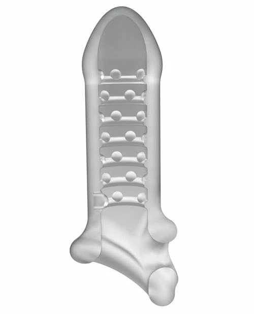 Sometimes you just want a little more. Slide into the OptiMALE(TM) Thick Extender with Ball Strap for increased length and thickness. Soft and stretchy to perfectly hug your shaft, this majorly size-boosting sleeve stretches six inches from its ball-teasing base to a firm head in a sheer, frosted material that looks and feels incredible. The extender’s ribbed, studded interior stimulates the penis, while the attached ball strap holds it in place and tugs at the balls for added pleasure with every thrust. Material TPE Color Frost Total Length 6 (in) / 15.24 (cm) Width/Diameter 2 (in) / 5.08 (cm) Circumference 6 (in) / 15.24 (cm)