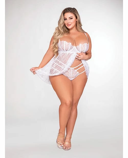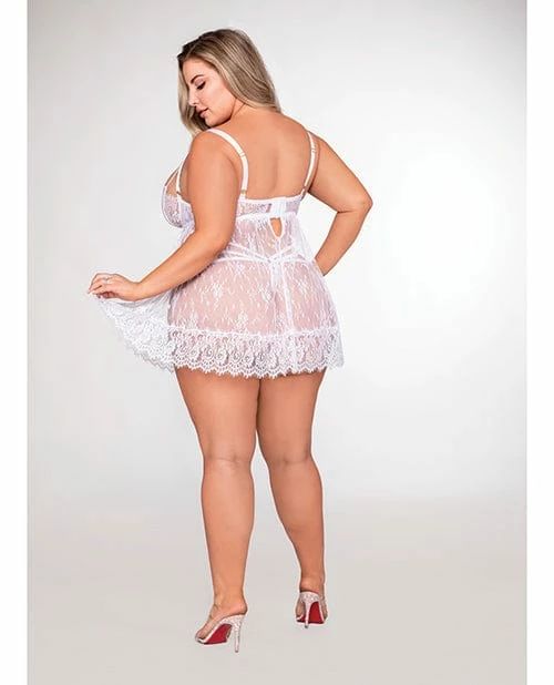 Dreamgirl International Eyelash Lace Babydoll & Strappy G-string Panty White