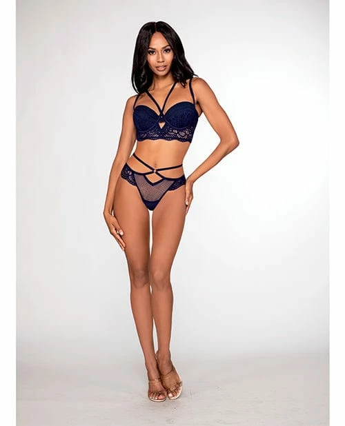 Dreamgirl International Lingerie Fishnet & Lace Bra & Panty G-string Nocturnal