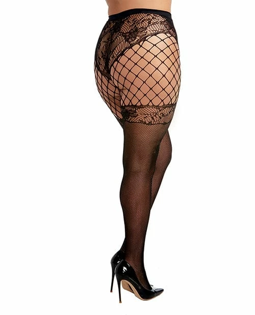 Multi-pattern fishnet and lace pantyhose.