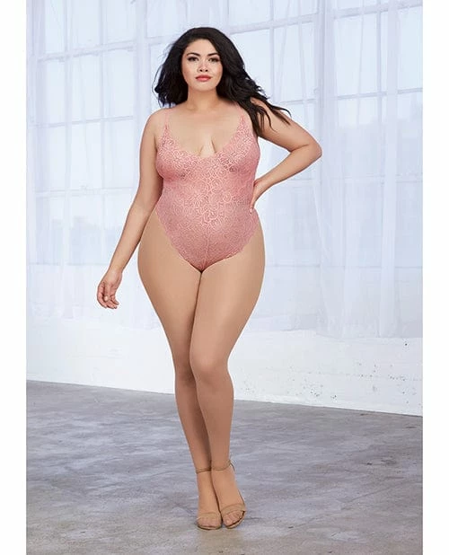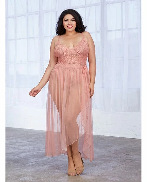 Dreamgirl International Lingerie Stretch Lace Teddy With Modified Back & Sheer Maxi Skirt With Adjustable Straps & G-String Vintage Rose XL